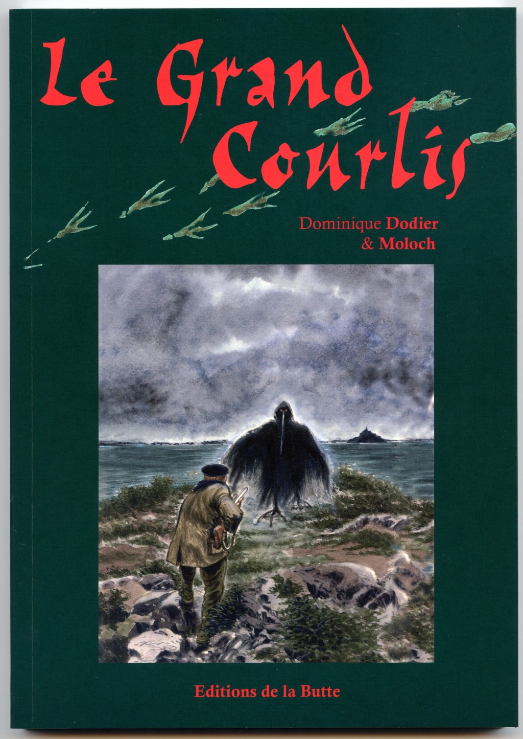 Ça se passe en 1965 et met en scène des gens du coin, soudainement confrontés à une monstruosité issue du passé… J’ai illustré avec plaisir cette histoire que Dod avait écrite il y a déjà quelques années et qui m’a permis de mettre en images une partie de la baie moins connue que le Mont, mais tout aussi fascinante. Parmi vous, amis lecteurs, combien savent que Tombelaine est plus grand que le Mont, mmh ? D’un point de vue bassement pragmatique, Le Grand Courlis arrive un mois avant les fêtes de Noël, bon prétexte pour (se) faire un cadeau… Il s’agit d’un album de 112 pages, comprenant plus de 75 illustrations en couleurs, de format 17 X 24 cm, avec une couverture souple à grands rabats intérieurs, au prix public de 20€. À l’occasion de sa sortie, je me propose de vous l’envoyer directement chez vous , assorti d’une dédicace dessinée personnalisée, pour un montant de 24€ (comprenant une participation aux frais d’envoi). N’hésitez pas à me passer un message (contact par mail via le site pour ceux qui n’ont pas mon adresse directe) pour plus de renseignements et me donner les noms et coordonnées de ceux à qui vous désirez offrir Le Grand Courlis. En avant-première, voici la première et la quatrième de couverture de l’album...